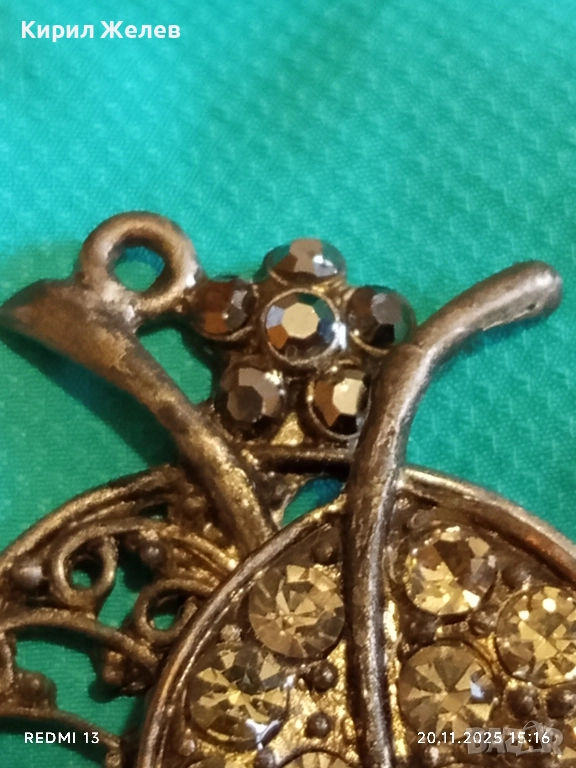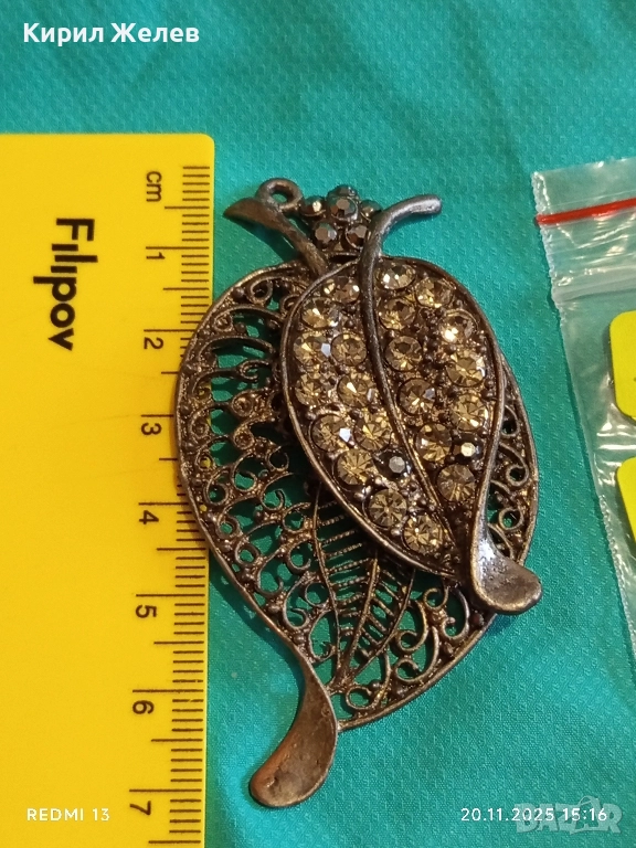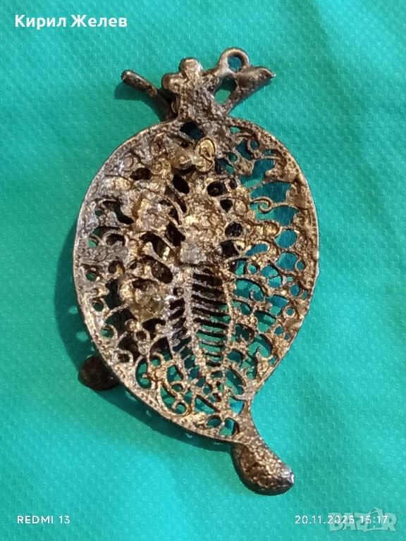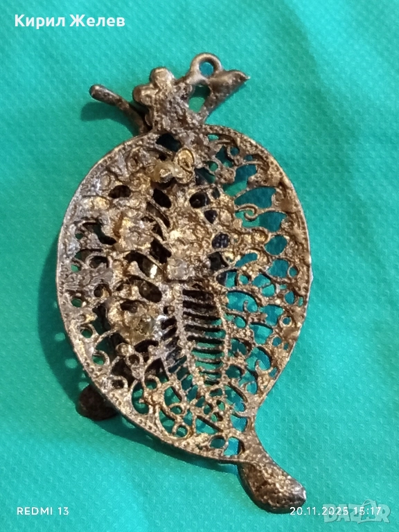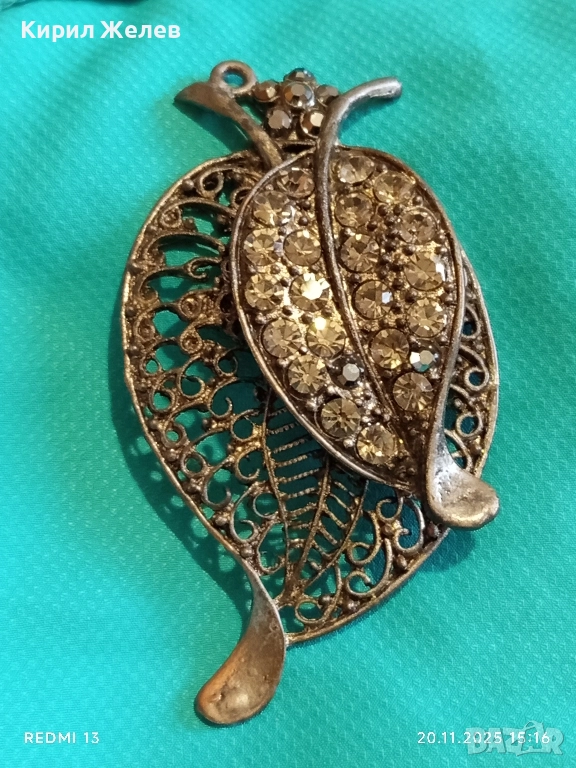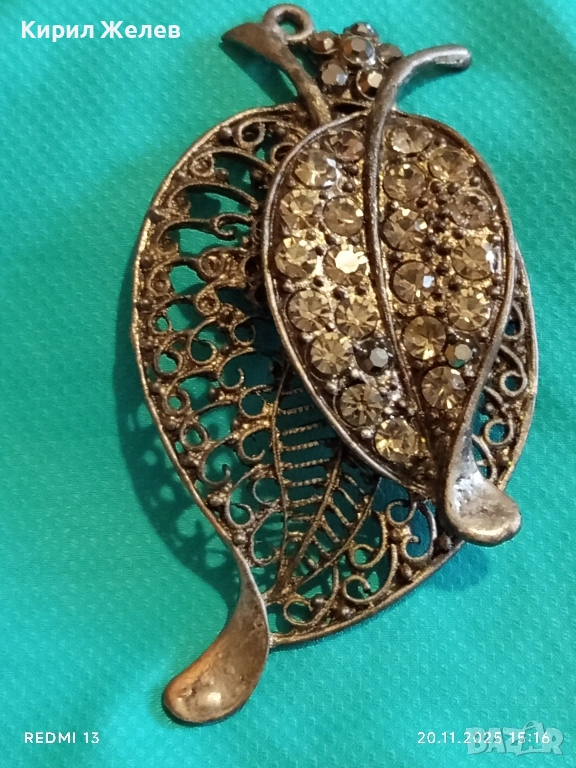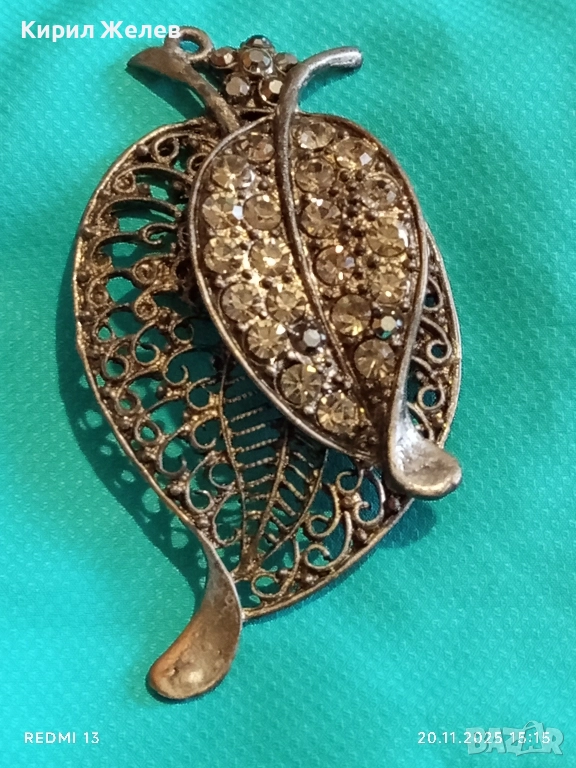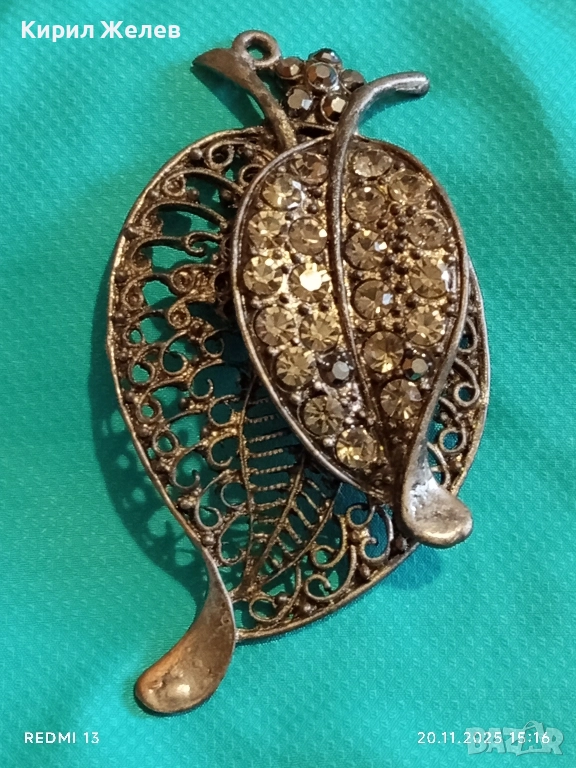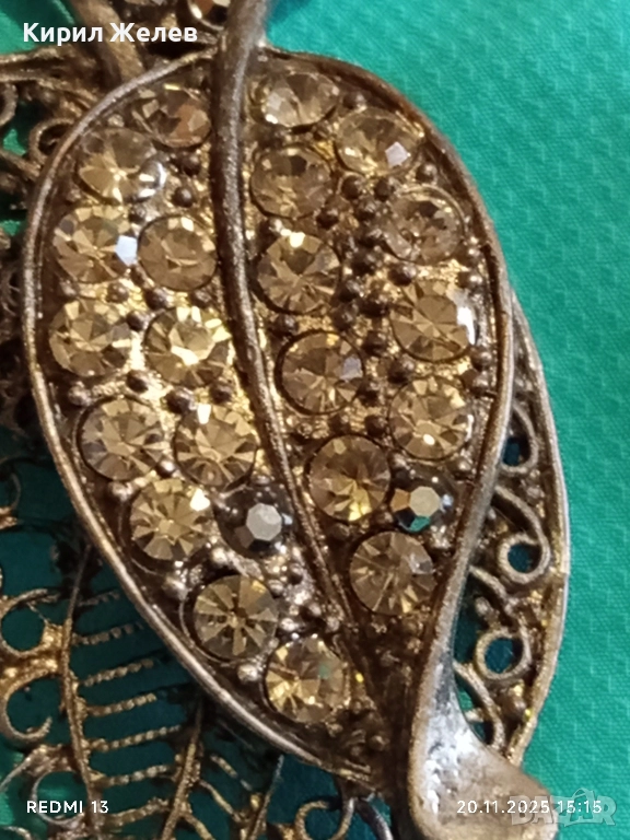 ВИНТИДЖ БРОШКА с ЛИСТА и КРИСТАЛИ ФИЛИГРАННА АРТ ДЕКО 52160