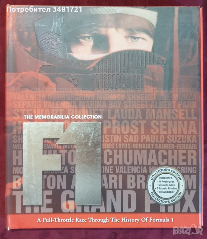 Това е книга, представяща историята на този спорт в текст, снимки и илюстрации. Но тя е и много повече - от релефните корици и тяхната допълнителна, магнитна, обгръщаща част до колекционерските допълнения, съдържащи се в допълнителни секции между страниците, част от които никога не са отваряни. Те съдържат предмети, които колекционери биха оценили, свързани с F1 - 5 пощенски картички, карта на писти, култови снимки и дори вестник.