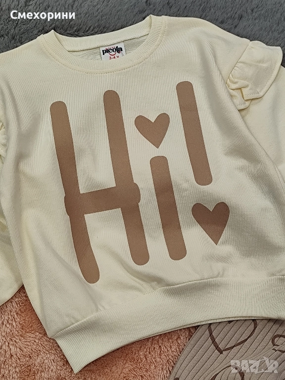 Красиви детски комплекти за момиченца: блузка с воали на раменете + рипсено клинче. Неватирано памучно трико!