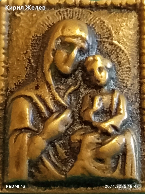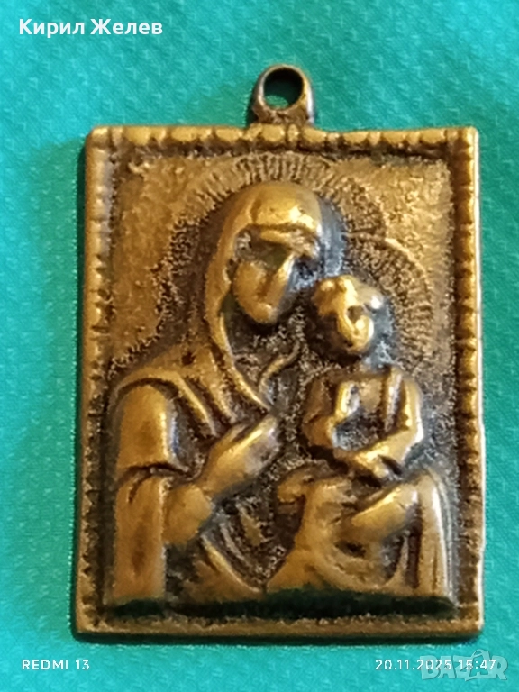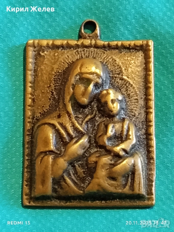 СТАРА БРОНЗОВА ИКОНА МЕДАЛЬОН Света Богородица с Младенеца 52201