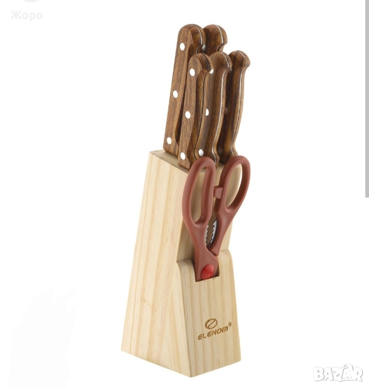 Комплект ножове с дървена стойка ЕЛЕКОМ- ЕК-07,7 части, черни или кафяви → Обява 52480995