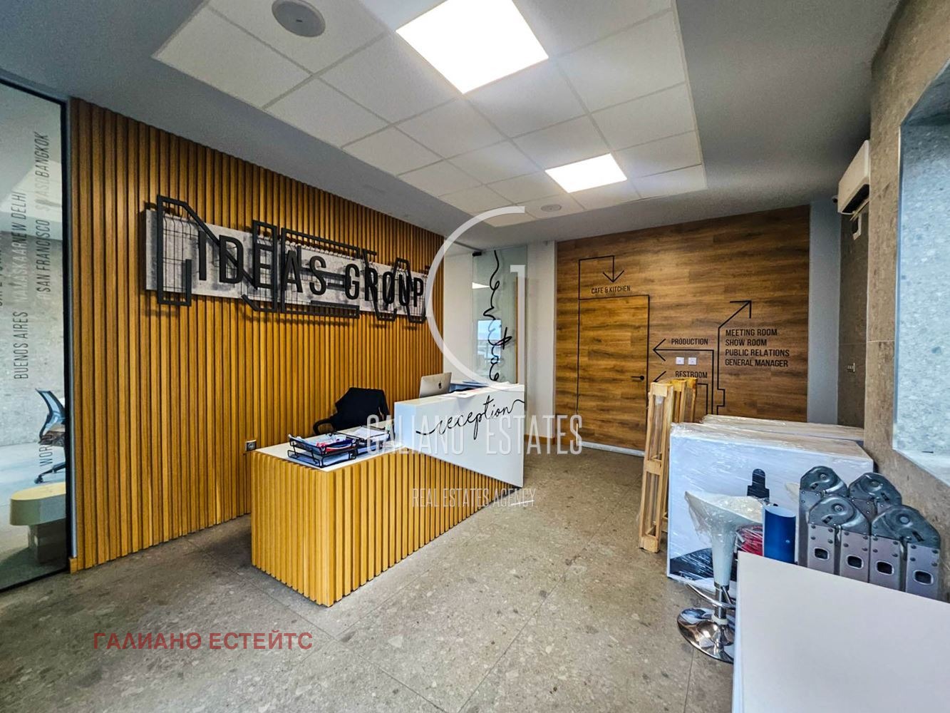 Етаж 1: рецепция/приемна зона, офис помещение, голяма кухня, мокро помещение, четири тоалетни, складово помещение и просторно производствено помещение.