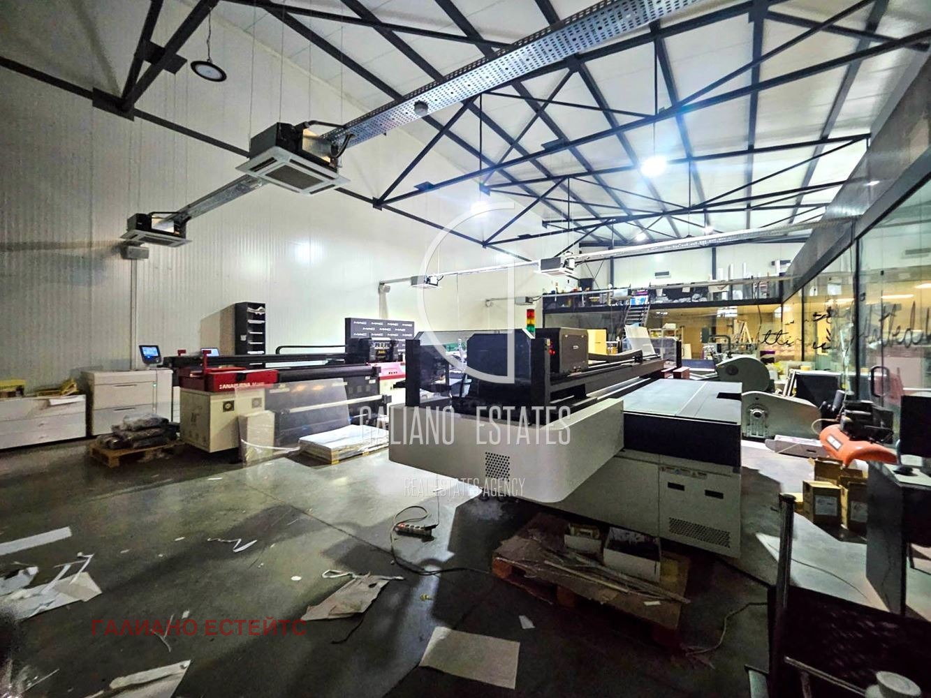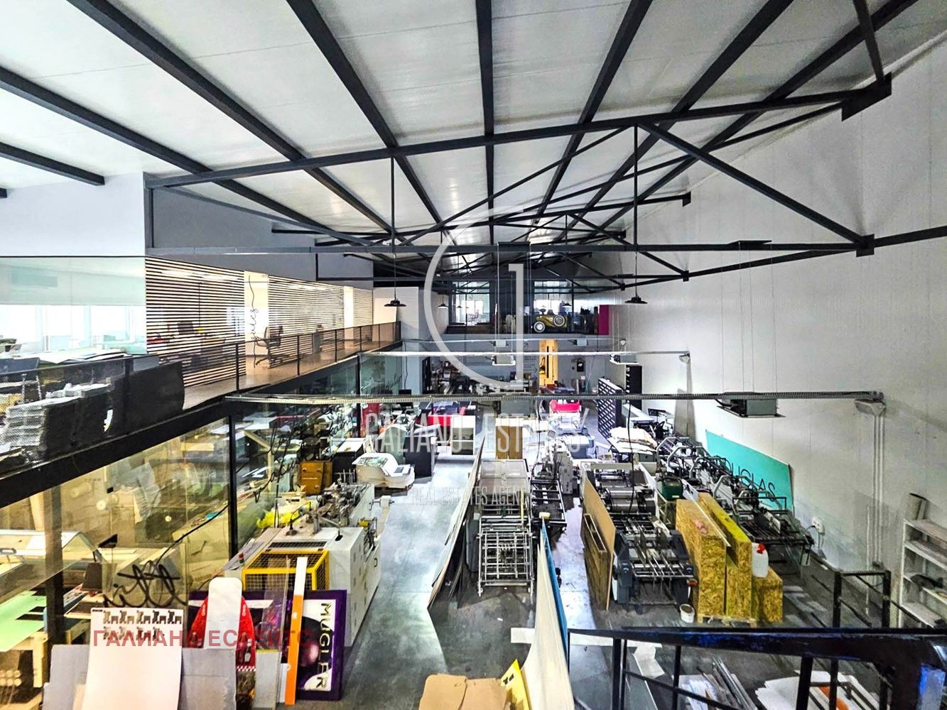 Galiano Estates има удоволствието да ви представи многофункционален имот, разположен на ключово място с бърз достъп до Околовръстен път и Северна тангента. РЗП: 950 кв. м. Парцел: 1100 кв. м. Височина: 5 7 м. Конструкция: термопанел. Под: шлайфан бетон. Два входа/изхода (5.5 х 5 м). Имотът предлага отлични условия за високоефективни производствени процеси, модерна логистика, надеждно складиране и мащабни пакетажни операции.