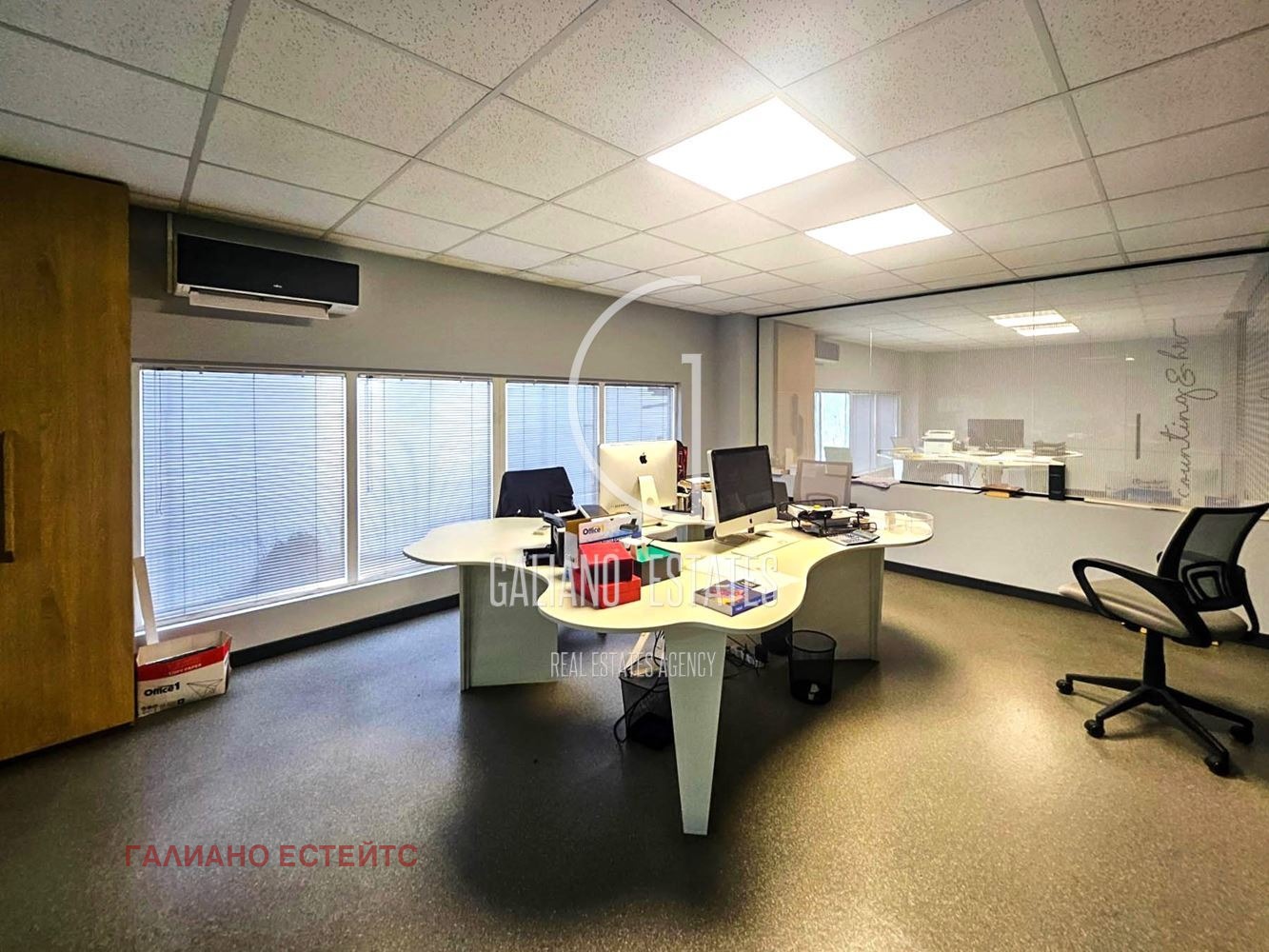 Етаж 2: производствено помещение, четири самостоятелни кабинета и конферентна/заседателна стая.