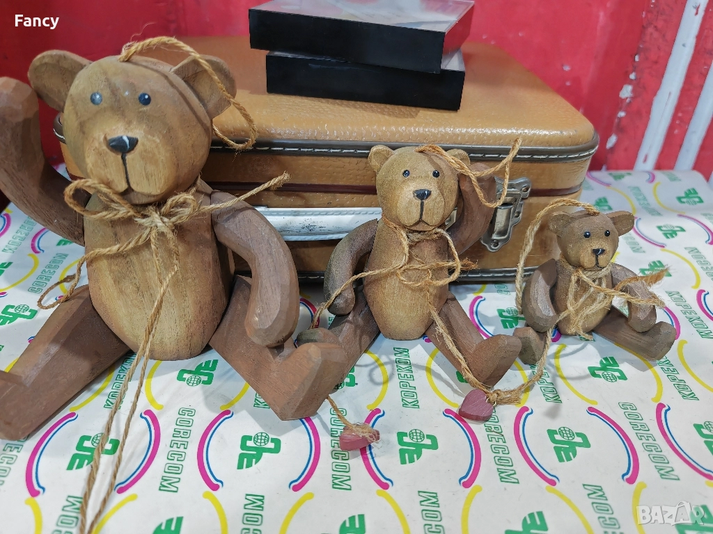 Продавам 3 бр ръчно изработени дървени Мечета с подвижни крайници. Цена за трите.