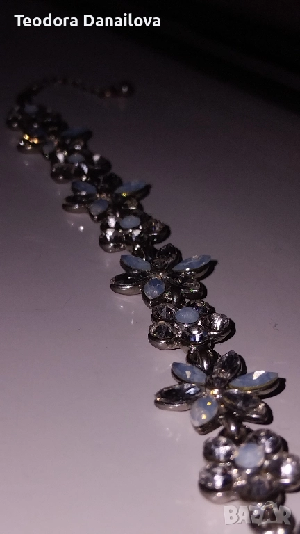 Нежна гривна с блестящ ефект, подходяща за различни поводи. Стилен аксесоар, който може да допълни вашия тоалет и да придаде изискан завършек на вашия облик. Не е от истинско сребро както можете да забележите на последната снимка.
