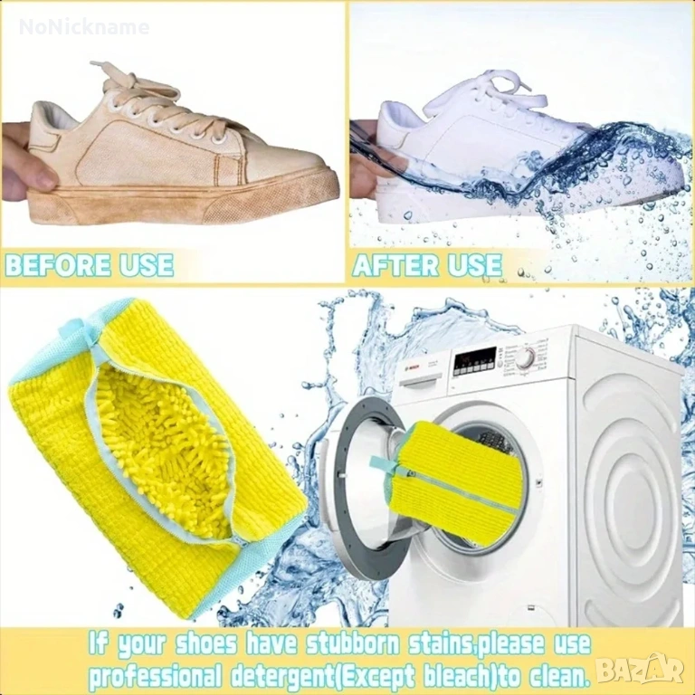 * Възможно ли е да се намали шумът, създаван при пране на обувки в пералня?: Разбира се! Тази торба за пране на обувки е предназначена за машинно пране и е изработена от мека шенилна материя, за да се сведе до минимум шумът по време на процеса на почистване.