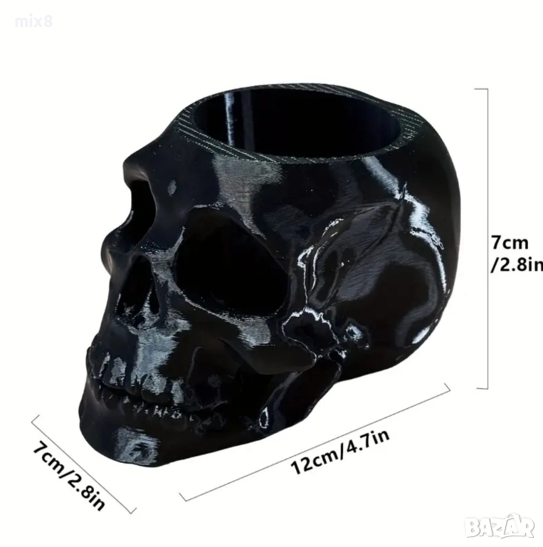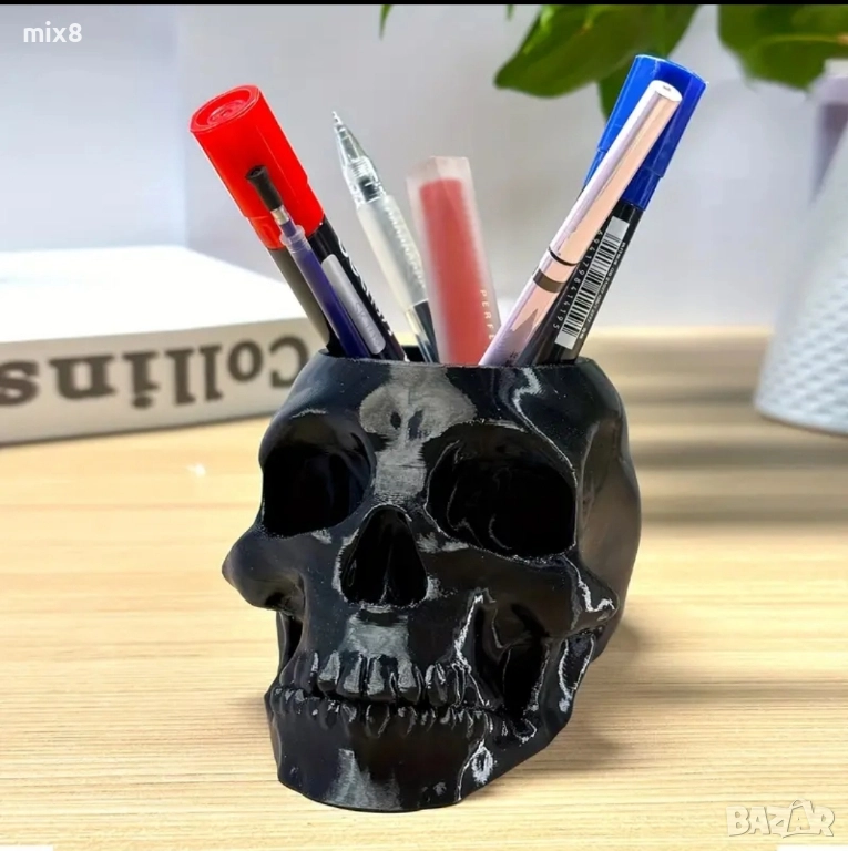 Освен като поставка за пишещи прибори, може да се използва и като органайзер за козметика, дребни вещи, саксия за малки растения или просто като готическа декорация за дома или офиса.