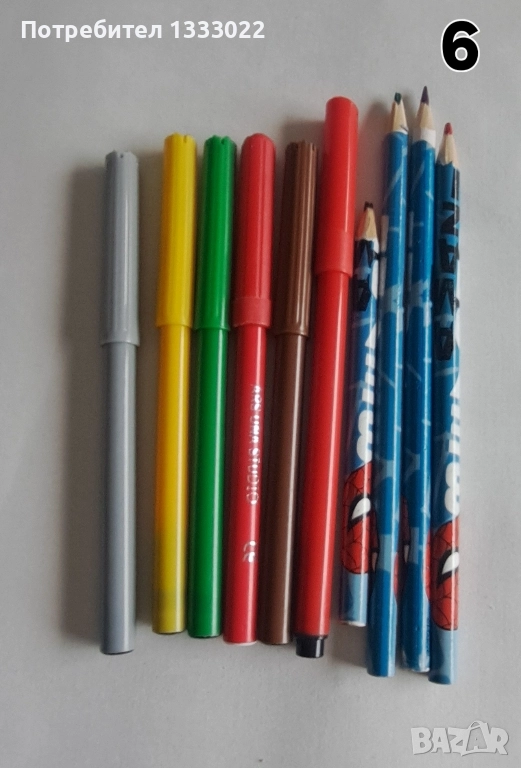 Фигурка на Спайдърмен с дължина 36см. ,говорящ, очите светят.Към фигурата изпращаме и останалите артикули.Плажна надуваема топка ,шапка,ножичка, папка с цип и др .Всички се виждат на снимките.Тези неща са нови. Цена за всичко 60лв. Допълнителните неща НЕ се продават поотделно .