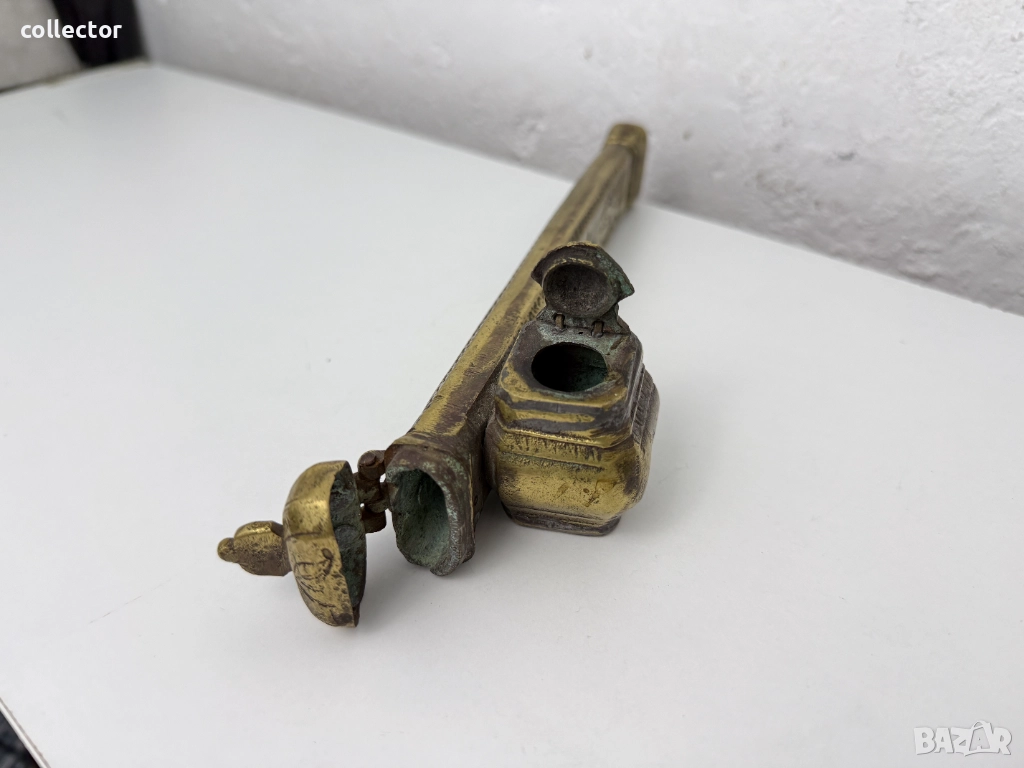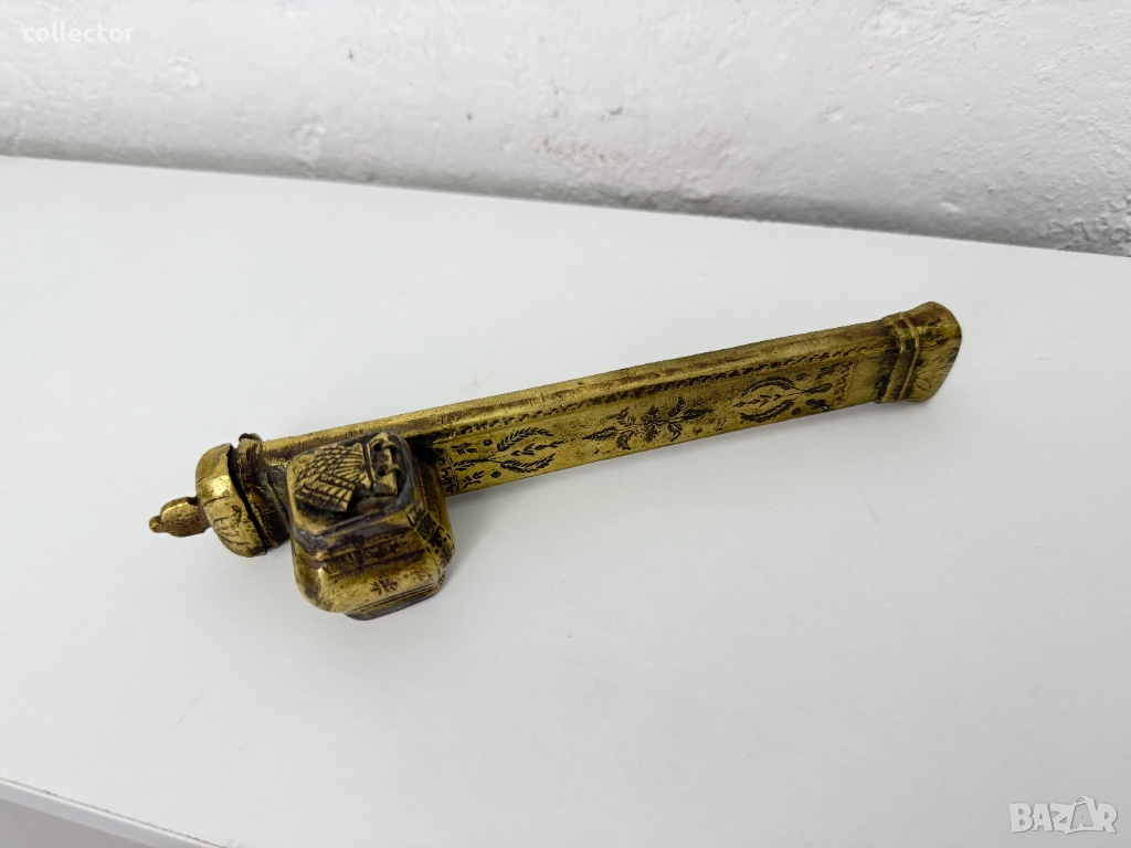 Дивитът е бил преносим комплект, използван от писари и калиграфи за съхранение на техните инструменти за писане. Като по-издължената част е за писалките (обикновено тръстикови или пера), прикрепената малка кутия е за сухо мастило. Добро запазено състояние.