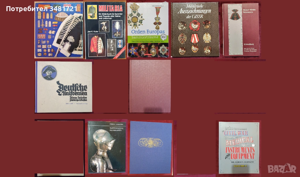 Военни униформи, медали, брони, екипировка, инструменти / 10 книги /