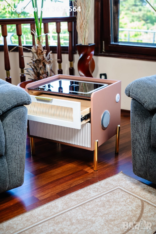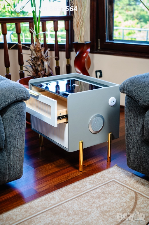 Смарт Шкаф: Модел VISION - безжично зареждане, Bluetooth стерео тонколона 20W, USB-A & USB-C, LED