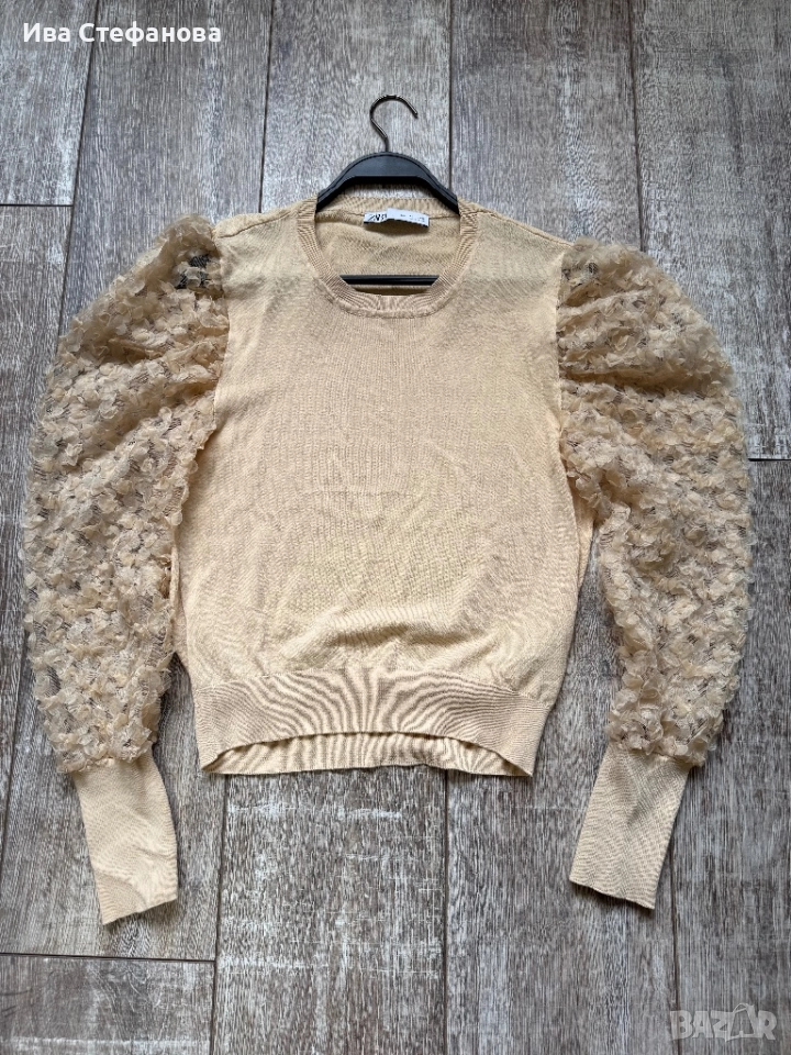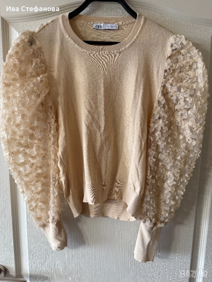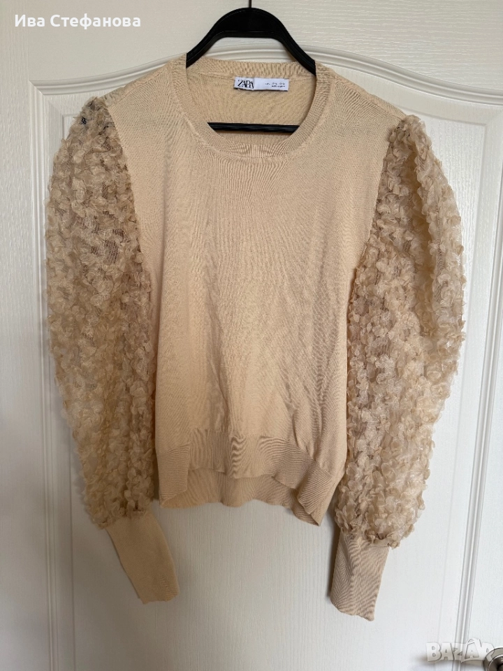 Нова бежова телесна nude елегантна блуза zara Zara Зара 5Д 3D цветя → Обява 52483531