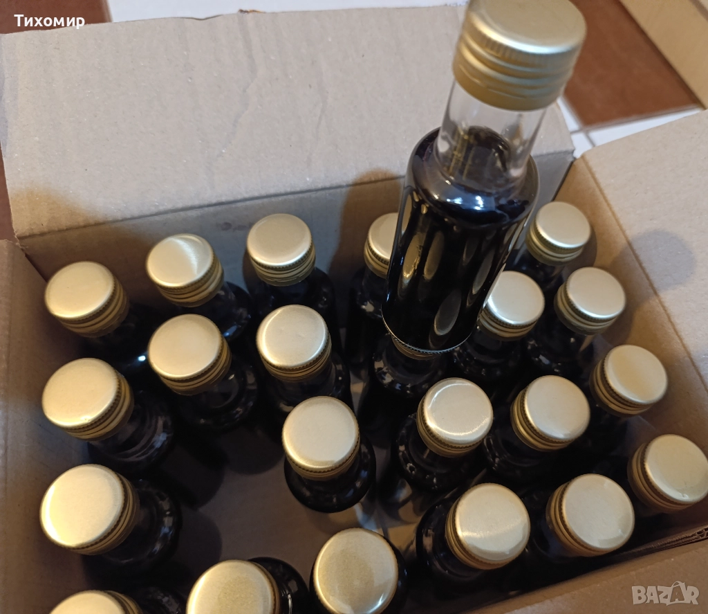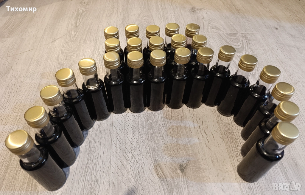 Налята е в нови стъклени бутилки от 100 милилитра с нови капачки.