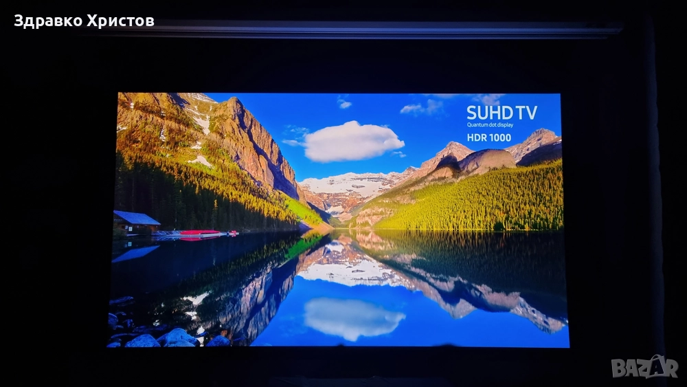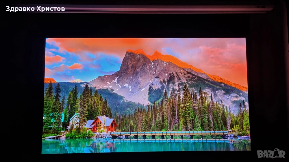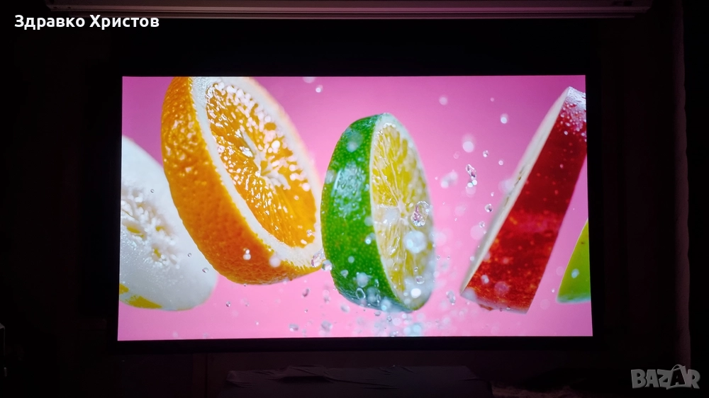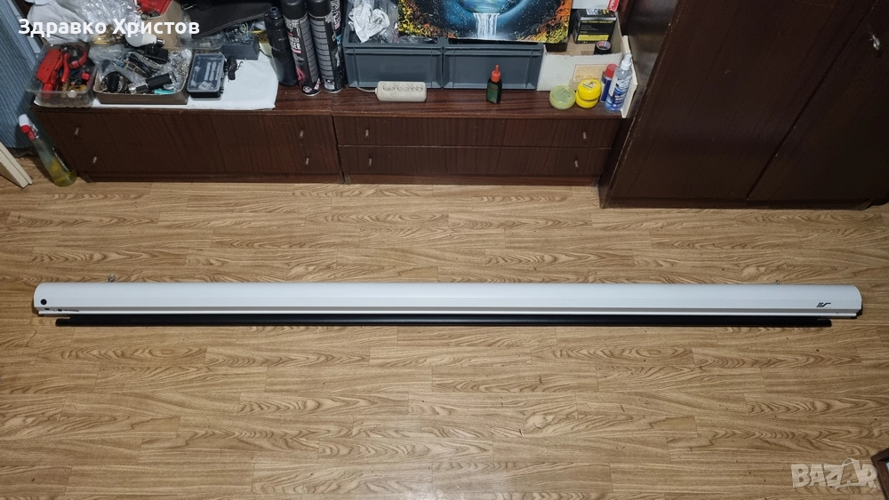 екран за проектор Elite Screens 100 инча, модел Saker Premium. Екрана е неразличим от нов, ползван е много малко, даже още мирише на боя! Картината е жива с отличен контраст и искрящи цветове. Екрана може да се гледа от ъгъл до 180 градуса, без да се наруши качеството на картината. Екрана е електрически, управлява се с бутони нагоре, надолу и стоп, движението е много гладко.