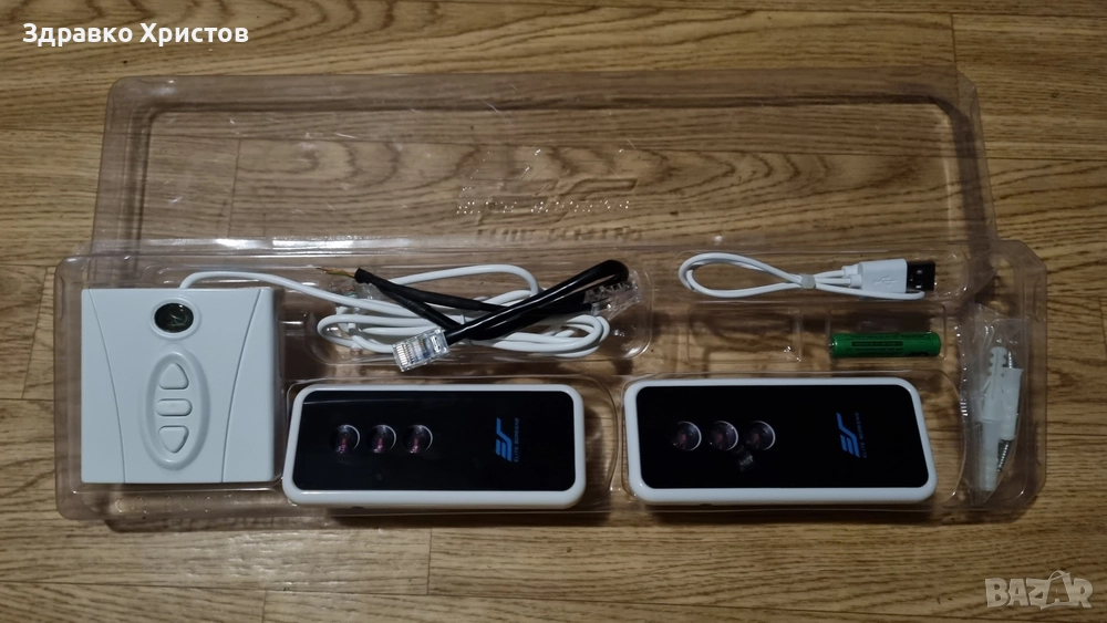 В комплекта са включени две дистанционни. Едното е с радио сигнал, а другото е с инфрачервен лъч, към което има инфрачервен приемник "око" с кабел. Също има превключвател за ръчно движение, който може да се монтира на стената както и кабел за задействане чрез напрежение 5-12V.