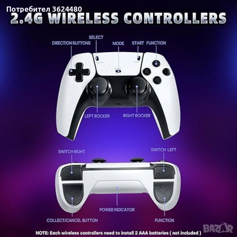 Безжична Свобода: В комплекта са включени 2 броя безжични джойстици, осигуряващи комфорт при игра без кабели.