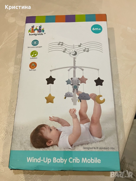 Изключително запазена, работи с навивен механизъм, лесна е за сглабяне и монтиране за легло, няма нищо счупено, мелодията е една, при интерес мога да изпратя клип как свири, има оригиналната кутия.
