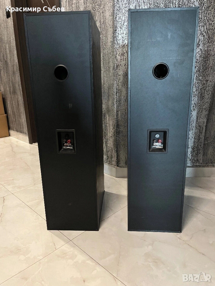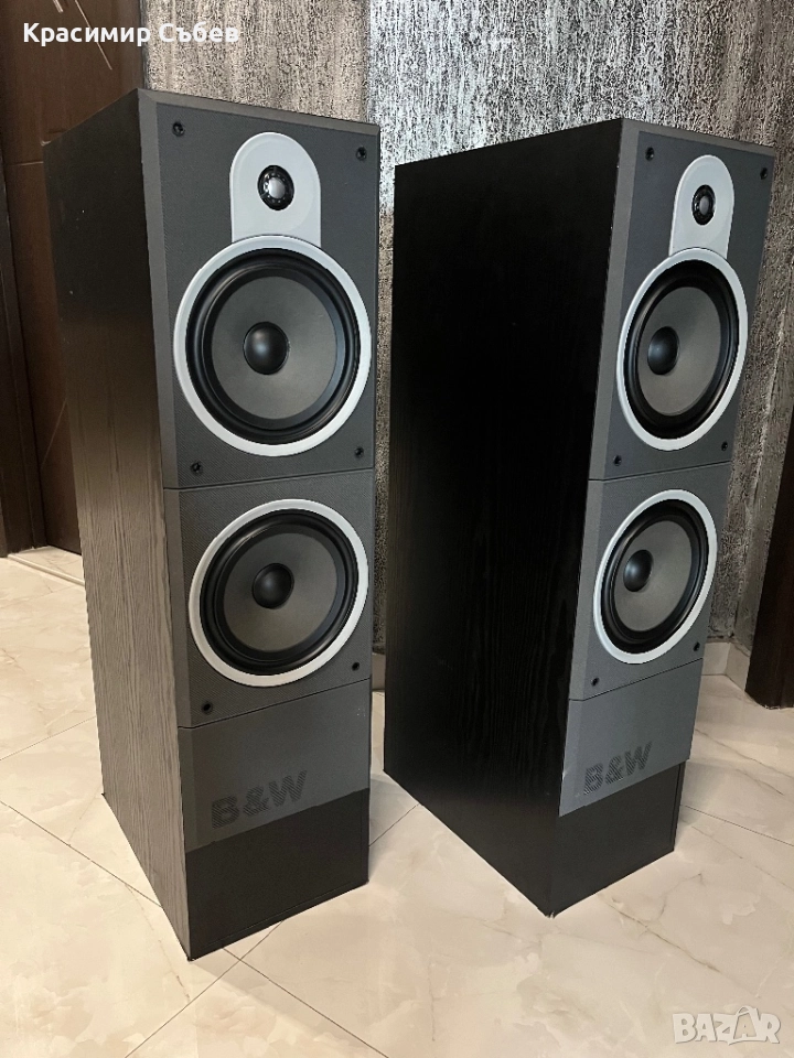 Продавам тонколони B&W DM580. Тонколоните са в много добро състояние, нямат забележки нито по говорителите, нито щети по кутийте. Много запазен екземпляр. Предпазните грилове също са в много добро състояние. Тези тонколони се отличават с много дълбоко изразен бас благодарение на 2-та 8” басови говорителя и огромната дълбочина на кутийте която е 402мм. Инат много приятно топло звучене, в никакъв случай не биха звучали прекалено ярко. Много добра сглобка на кутийте, разделена с вътрешни прегради. С добрата си чувствителност от 91db биха свирили добре и с по-маломощни усилватели, но с добър усилвател могат да се разкрият много. С лекота могат да надсвирят доста по-скъпи и нови тонколони. За парите си трудно ще се намери нещо по-добро. Намират се в Димитровград. Могат да се видят и чуят на място с мой или ваш усилвател. По-надолу има и клип лак свирят. Ето и данни за тях: Manufacturer: B&W