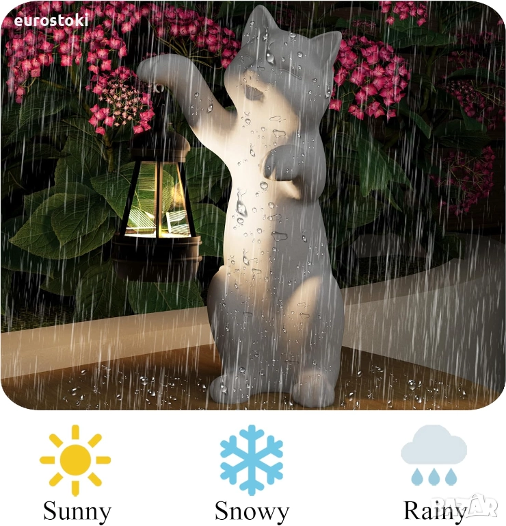 Статуя на котка от смола със соларен фенер - външни и вътрешни декорации, статуи с фенери за градина