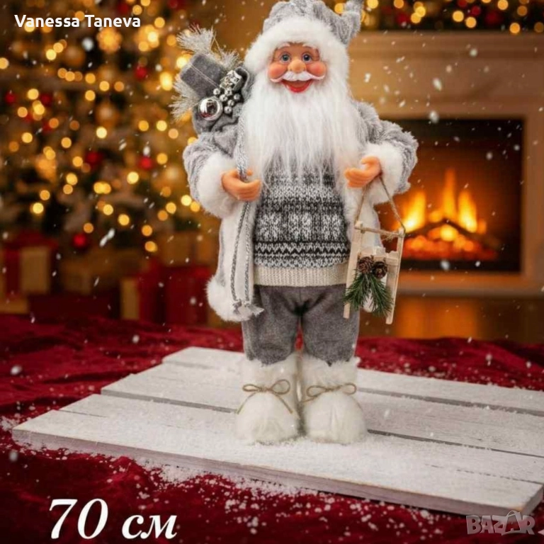 Декоративен Дядо Коледа в сиво – уют, топлина и празничен дух у дома (50см ,,20.90лв,, / 70см ,,30.90лв,, / 90см ,,45.90лв,,)