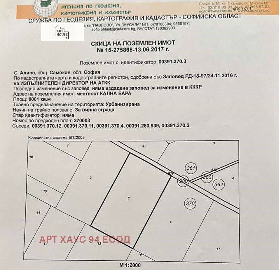 -> с кадастрален идентификатор 00391.370.3 ( 8001кв.м)
