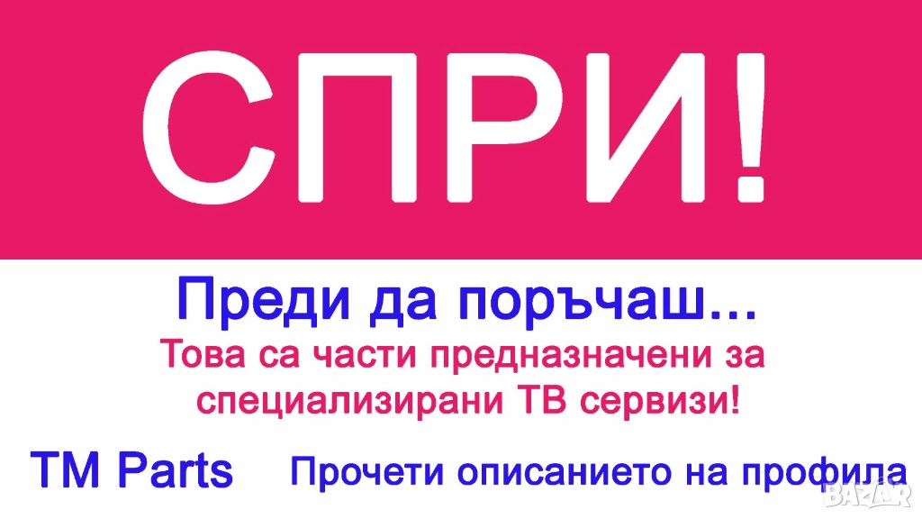 Продавам нови и употребявани части от счупени или дефектни телевизори само на ТВ сервизи