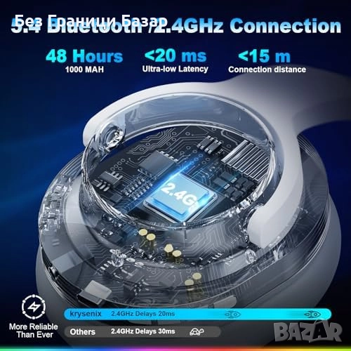 Нови Безжични геймърски слушалки PG3 7.1, ENC микрофон, 48 часа батерия