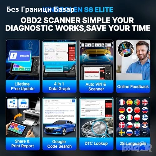 Поддръжка на 28 езика, Auto VIN и модерни функции за диагностика