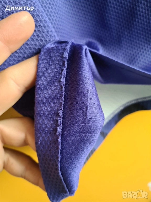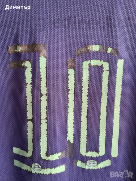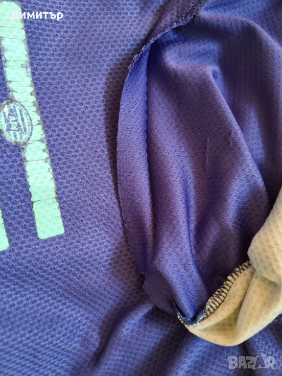 Добро състояние, размер M, според мерките, отговаря си. Мерки: дължина отпред през средата 60см, на гърба 70см, широчина под мишниците 53 см. Забележките са снимани - мъхчета по материята, изтрит номер на гърба и частична липса на шев по долния ръб.