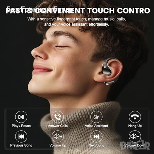 Нови Безжични open-ear слушалки 40 часа, ENC, тъч контрол, IPX7