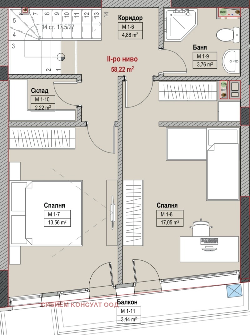 2-ро ниво - 2 спални, баня-тоалетна, складово помещение и чудесна тераса с ЮЖНО изложение.