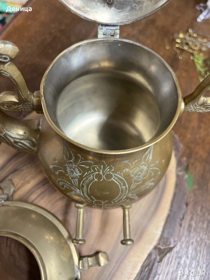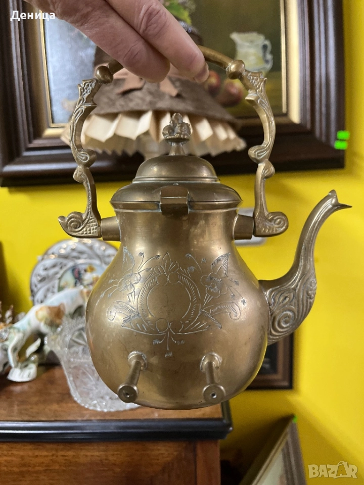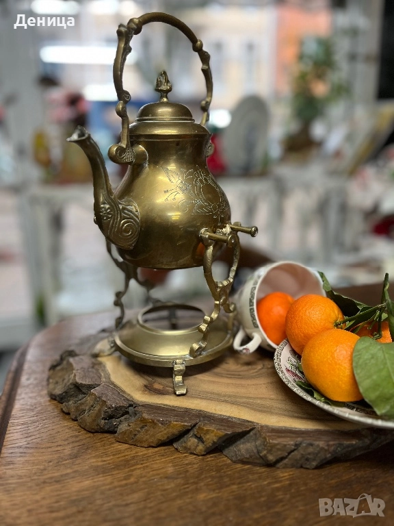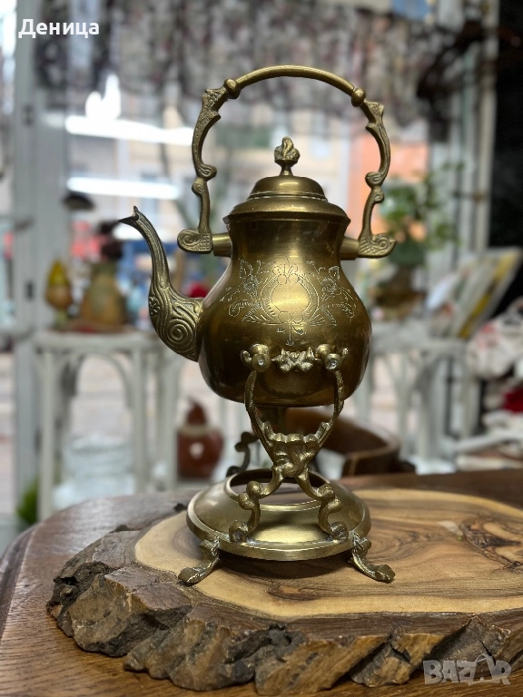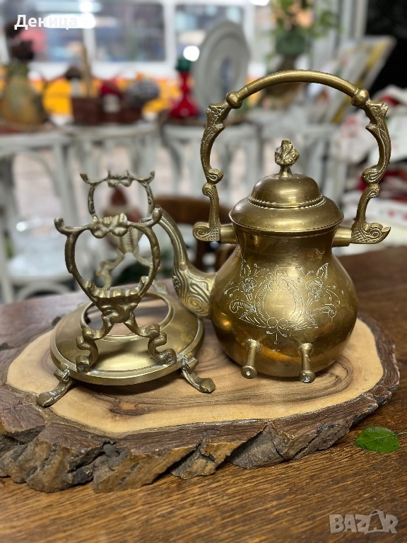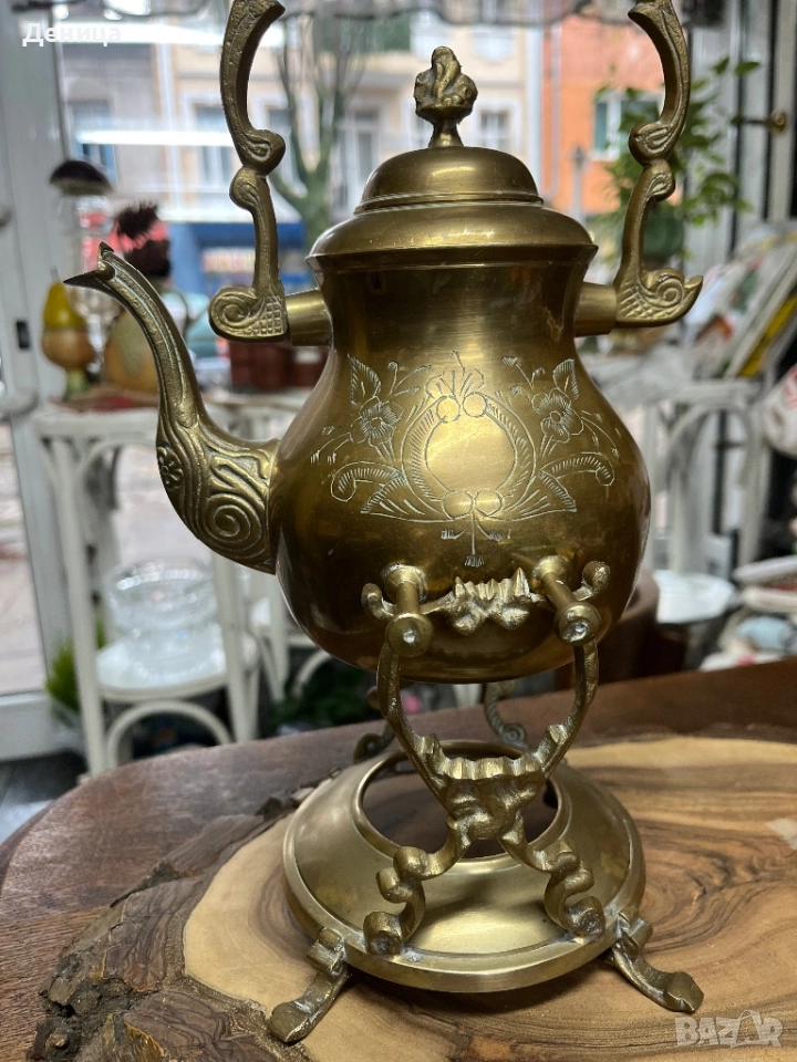Жесток комплект от месингов чайник и елегантна орнаментирана стойка♥️ йник. → Обява 52487650