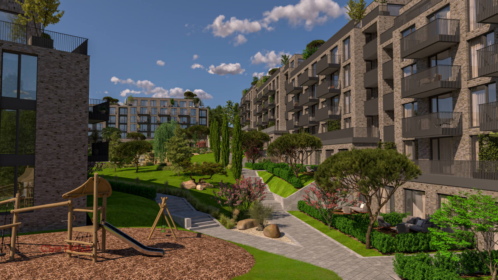 детска площадка, вътрешен двор без автомобили