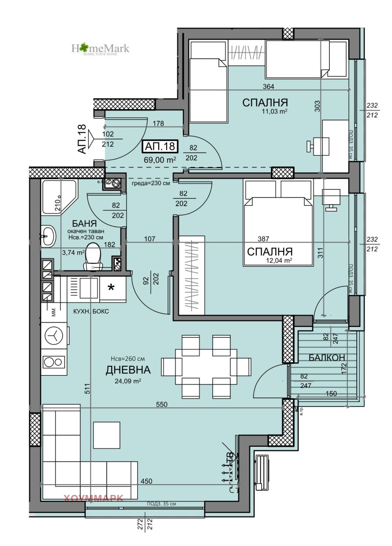 Типове апартаменти: двустайни и тристайни с функционално разпределени жилищни площи.