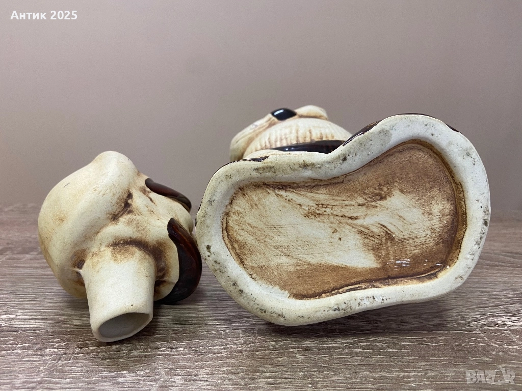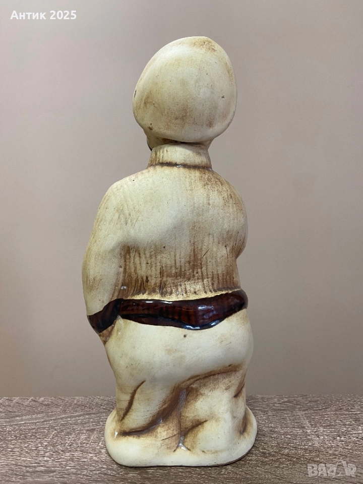 Оригинален винтидж керамичен щоф във формата на моряк с халба. Изработен е в светлобежови тонове с тъмнокафяви акценти и има изразителен декоративен стил. Подходящ е както за декорация в интериора, така и за колекция или като необичаен подарък. Състоянието е много добро, без пукнатини и отчупвания.
