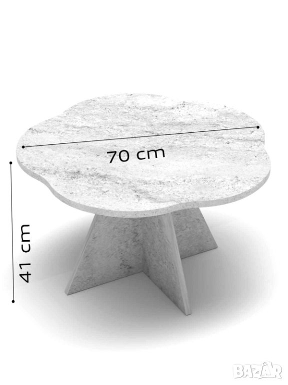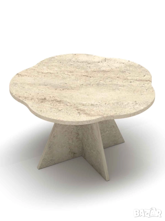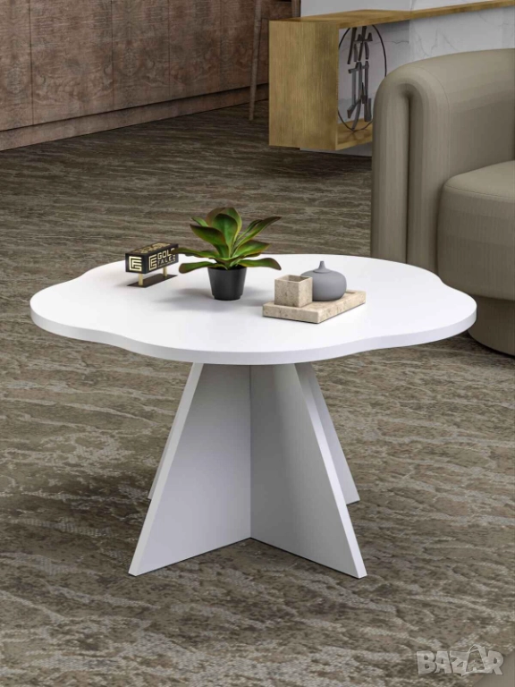 Нейната форма, вдъхновена от нежни флорални линии, съчетава декоративен ефект и практичност, превръщайки я в перфектно допълнение към всяка дневна. Масата е изработена от висококачествени материали, устойчиви на петна и ежедневна употреба, което гарантира дълъг живот и лесна поддръжка.