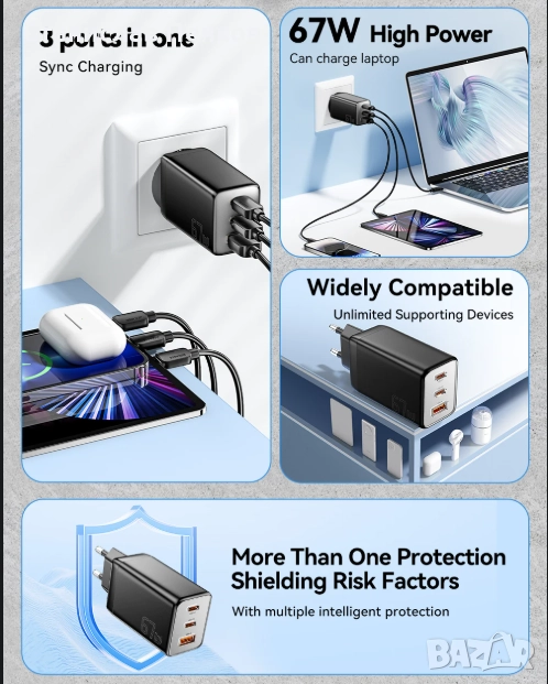 * 65W бързо зареждане