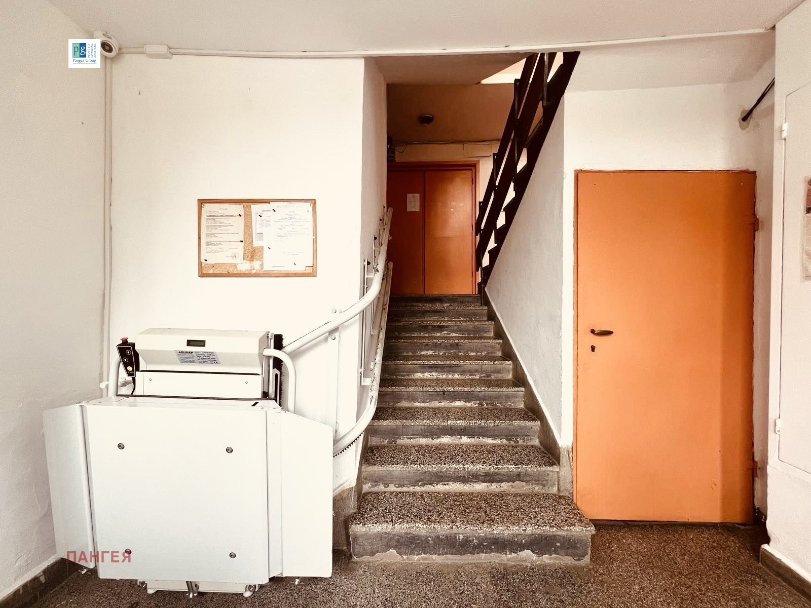 Във входа има инсталирана инвалидна платформа до асансьора.