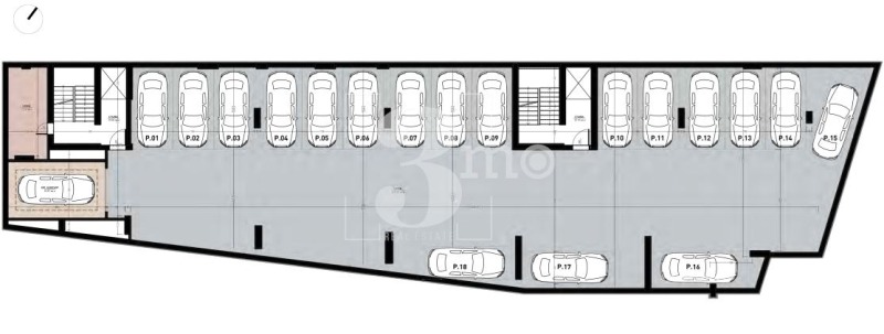 Възможностите за паркиране са с паркоместа на партера и две подземни нива с достъп чрез подемник. Цените на паркоместата са между 20 000 евро и 32 500 евро в зависимост от разположението.
