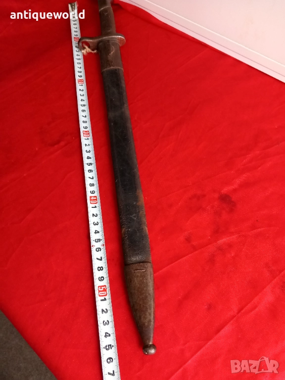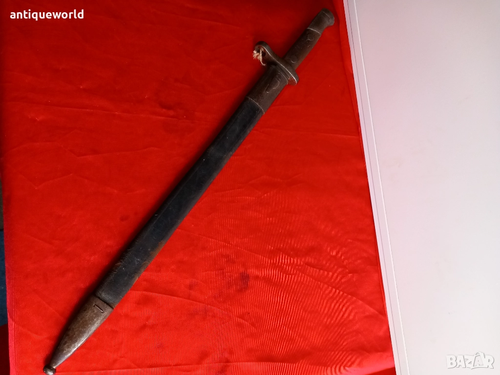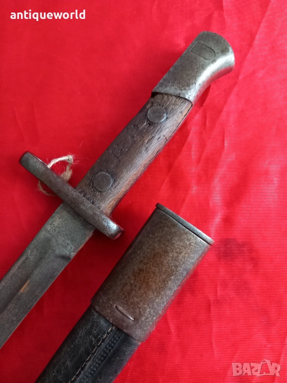 1913г ,WW1 Голям Стар Испански Толедски Байонет, Щик "Artilleria National Toledo" . М1913 ,ПСВ .Кожена Кания ,Работещ бутон, Незаточван.Налични Маркировки.