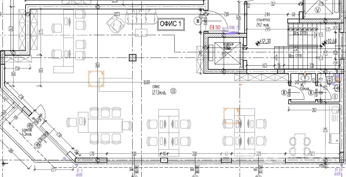 Просторен офис 173,87 кв.м 🏢, разположен на 3-ти етаж в модерна сграда с търговска и складова част. Помещението е с височина 3,30 м, осигуряваща комфорт и свобода при организиране на вътрешното пространство.