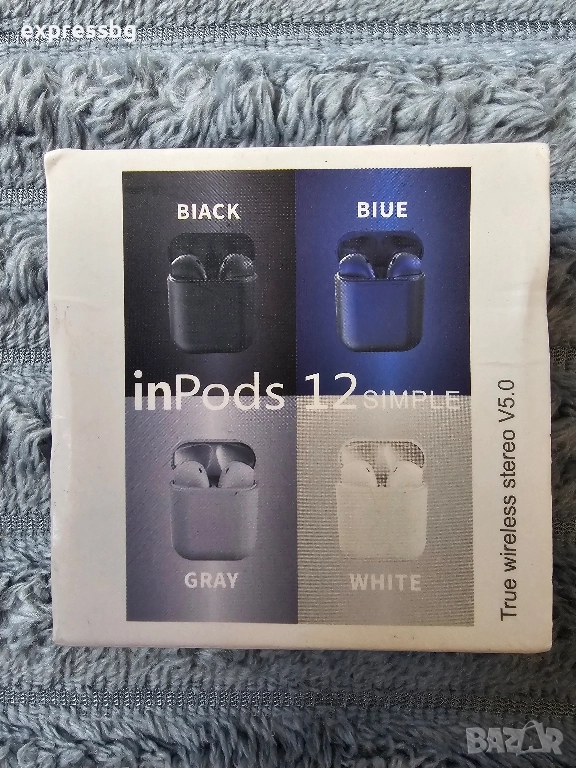 Безжични слушалки Inpots, Bluetooth TWS 5.0, Гумирана повърхност, Черен → Обява 52489209