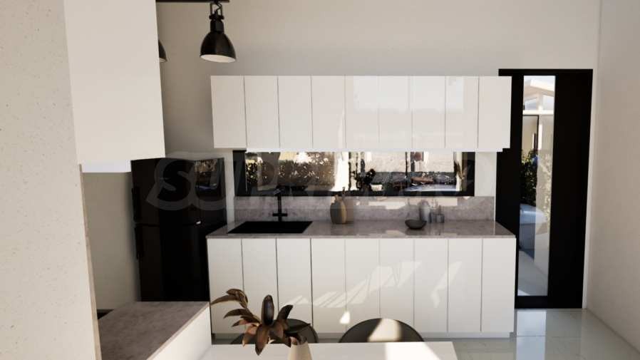 Прегърнете природата: Къщата е заобиколена от очарователна 180 кв.м градина, зелен оазис, който е естествено продължение на вътрешното пространство. Тук можете да се насладите на кафето си под сутрешното слънце, да организирате незабравими барбекюта с приятели или просто да се отпуснете в уюта на откритата всекидневна, усещайки морския бриз.