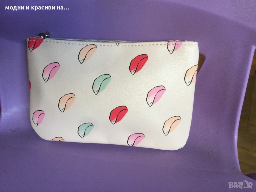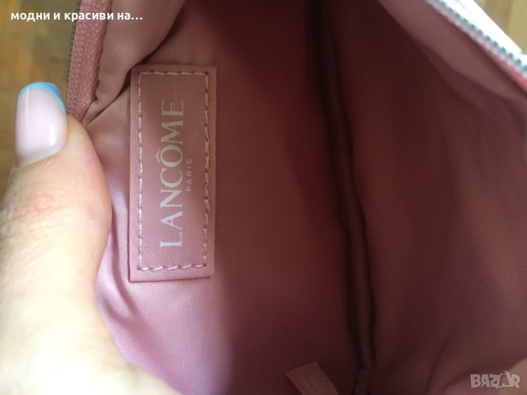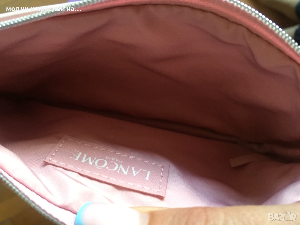 Първият несесер е на Lancôme Paris. Закачлив и свеж.Основният цвят е пудра с червени и розови акценти. В перфектно състояние. Нов, не е ползван. Размери:височина 12 см., ширина 19 см.