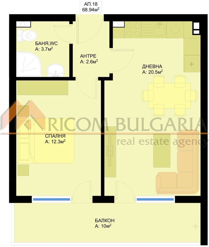 Риком България продава двустаен апартамент в новострояща се сграда в квартал Победа. Съвременна архитектура в район с напълно изградена инфраструктура, много училища, детски градини, магазини, молове, поликлиники. В непосредствена близост до Автогара Варна и многобройни автобусни връзки, свързващи всички райони на града. При строителството се използват висококачествени енергоспестяващи материали. Апартаментът е разположен на пети етаж/ от общо десет/. Състои се от: входно антре, дневен тракт с кухня, спалня, тераса, баня с тоалетна. Апартаментът ще бъде завършен по БДС. Възможност за закупуване на подземно паркомясто. Риком България ви предлага: безплатна юридическа консултация, изготвяне на документи, съдействие за банков кредит чрез регистриран посредник по чл.51 по ЗКНИП при преференциални условия. КОД на офертата: 34749
