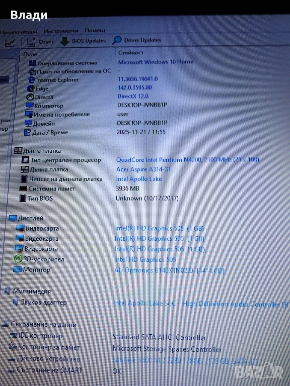 Acer Aspire 3 A314-31 Четириядрен SSD отлична батерия → Обява 52490251