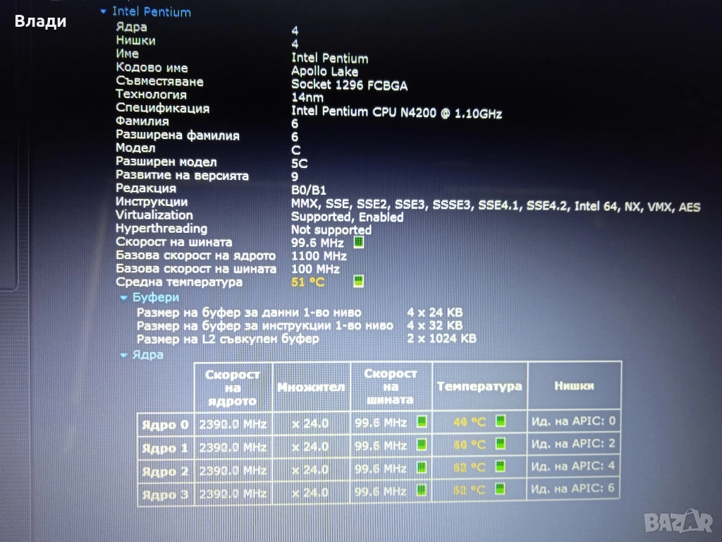 Процесор QuadCore Intel Pentium N4200 1.10 - 2.40 Ghz.