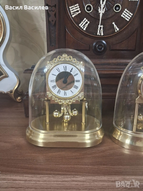Продавам 2 бр. идентични 400 дневни немски кварцови часовници, калибър "джудже".Единият дребосък е на марката Kundo, а другият е Schmid. Рядко срещана и екзотична форма на корпус и купол, електромагнитни механизми на махалото. Този тип механизми, както и плексигласовите куполи правят този тип часовници изключително лесни за поддръжка и транспортиране.