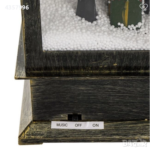 Вътре има фигурка на Дядо Коледа с подаръци и LED осветление.